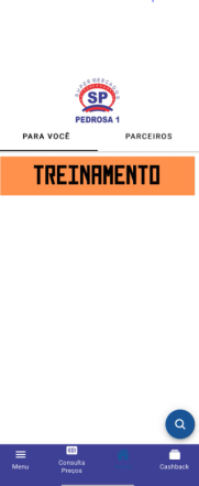 Essa imagem representa um exemplo de como o banner estático é exibido dentro do aplicativo. O banner “TREINAMENTO”, previamente cadastrado no painel, aparece na tela inicial da aba correspondente, sendo visualizado pelos usuários de forma destacada e com identidade visual personalizada.