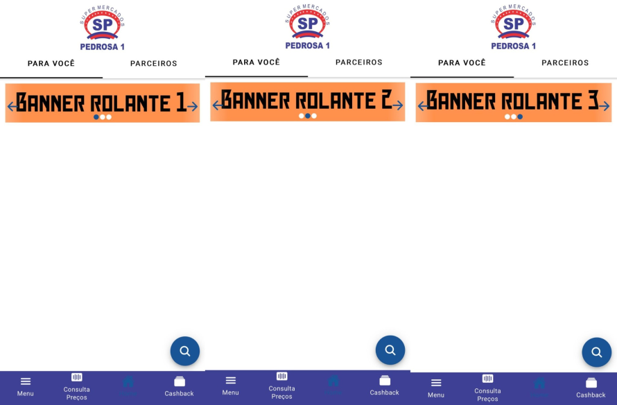 Um banner rolante é um conjunto de imagens exibidas em sequência automática, geralmente em formato de carrossel. Ele permite destacar várias campanhas, produtos ou mensagens em um único espaço dentro do aplicativo, tornando a comunicação mais dinâmica e atrativa.
