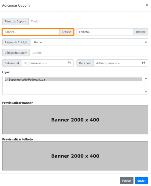 O banner é a imagem principal do cupom, utilizada para chamar a atenção do usuário para a promoção ou campanha.