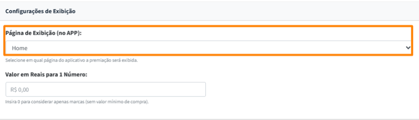 A "Página de Exibição" refere-se ao local específico dentro do aplicativo onde a premiação, campanha ou banner será mostrado para o usuário. Esse campo permite que você determine em qual seção do app o conteúdo será exibido.