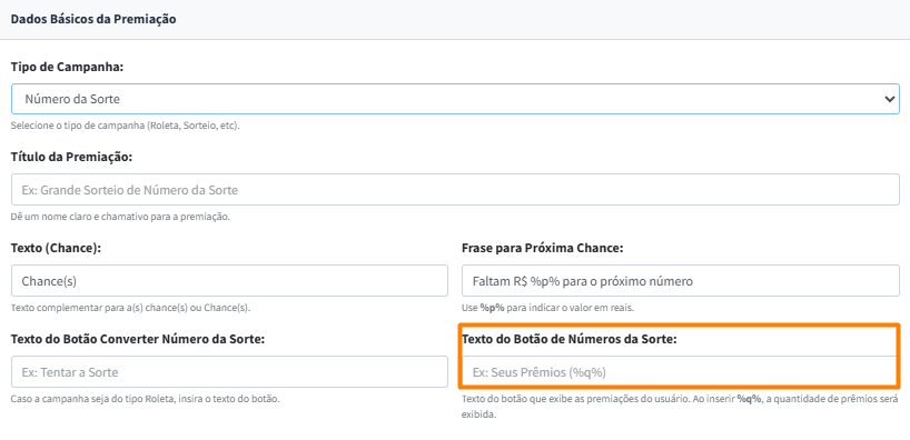 Texto do botão que exibe as premiações do usuário. Ao inserir %q%, a quantidade de prêmios será exibida.