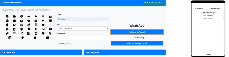 Assim, o WhatsApp será acessível rapidamente a partir do rodapé, proporcionando conveniência e acesso direto à funcionalidade ou link configurado.